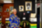 Terry Campbell, Personal Assistant to The Most Honourable Portia Simpson-Miller, stands beside a display honoring the former Prime Minister.